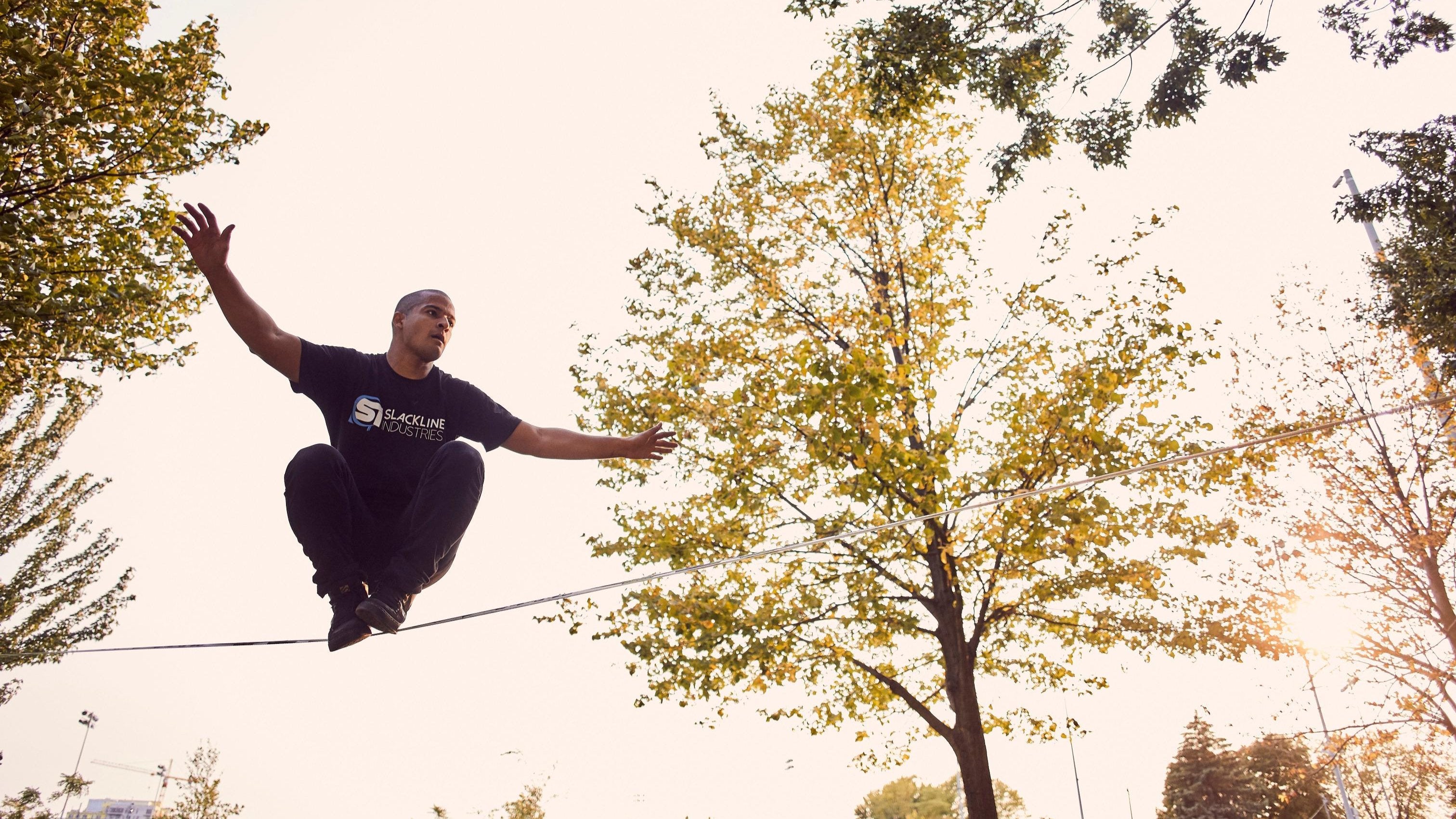 Bad clothing can also ruin your line from the first day of use. When the trickline webbing is installed, the high tension makes the webbing more fragile to shear. In other words, the line is easier to cut. Pants and shorts with buttons on the back, or zippers on the side can rub against the webbing and cause micro cuts, leading to fraying of your slackline. It can even make the new webbing inappropriate for use somewhat quickly.